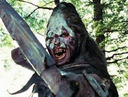 | Over the shoulder shot - This shot is used usually between two people having a conversation, it's a useful shot to use to switch back and forth when characters are talking, here are two orcs from Lord of the Rings in mid-confrontation |